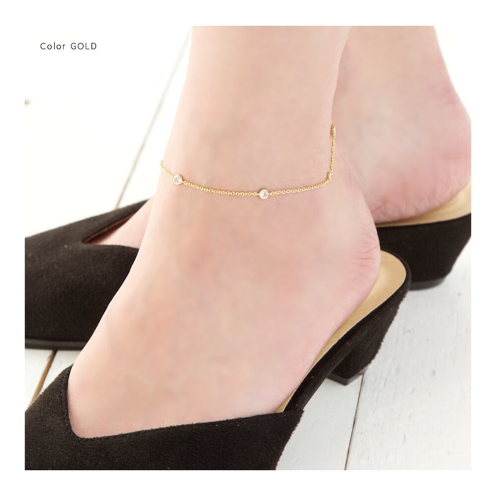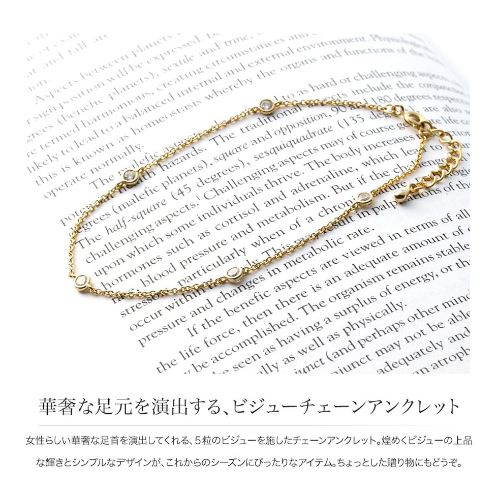アンクレット 金属アレルギー ニッケルフリー レディース アンクレット チェーン 5粒 ビジュー メタル 細身 アクセサリー cream dot ゆうパケット [ゴールド_ワンサイズ]