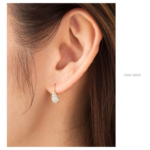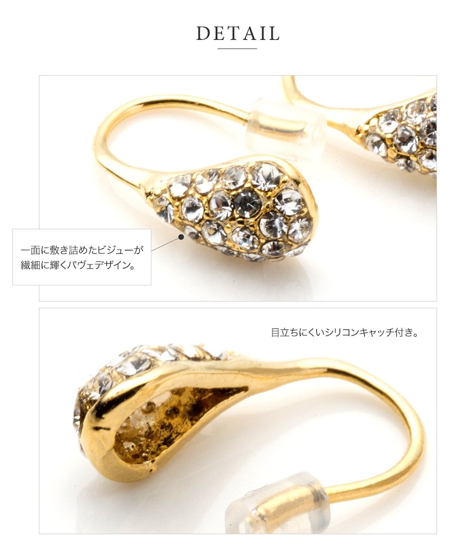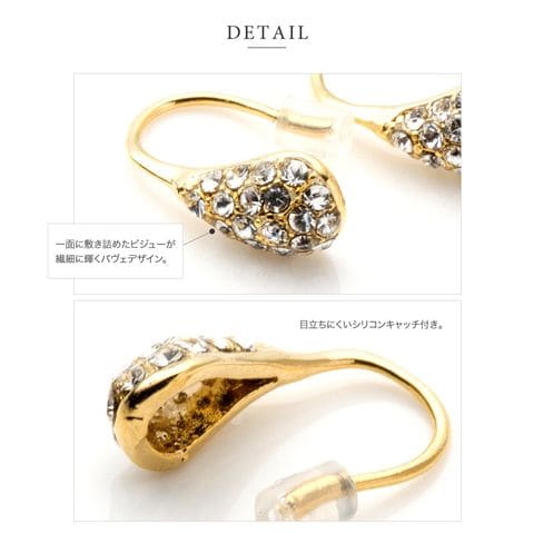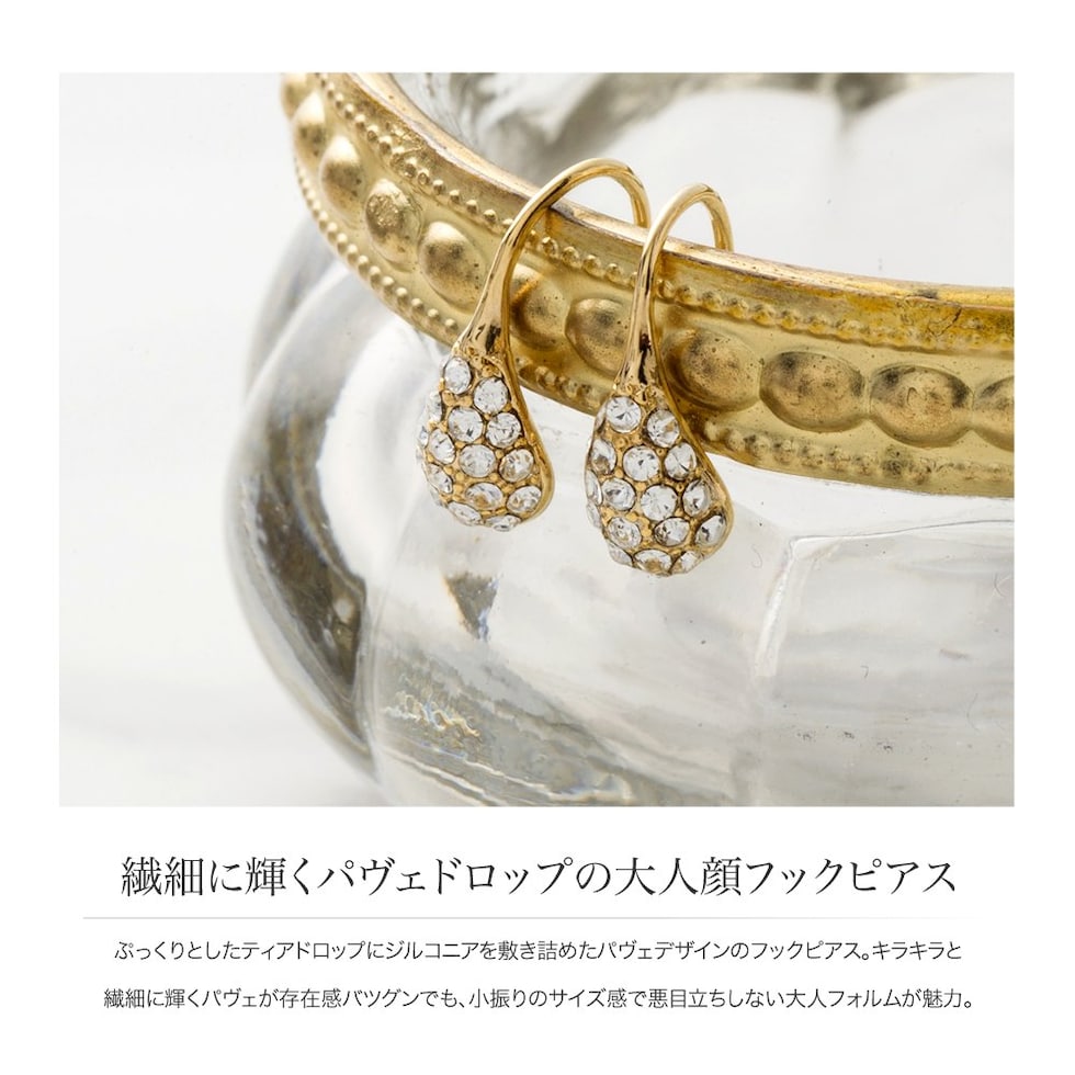 ぷっくりとしたティアドロップにジルコニアを敷き詰めたパヴェデザインのフックピアス。