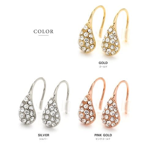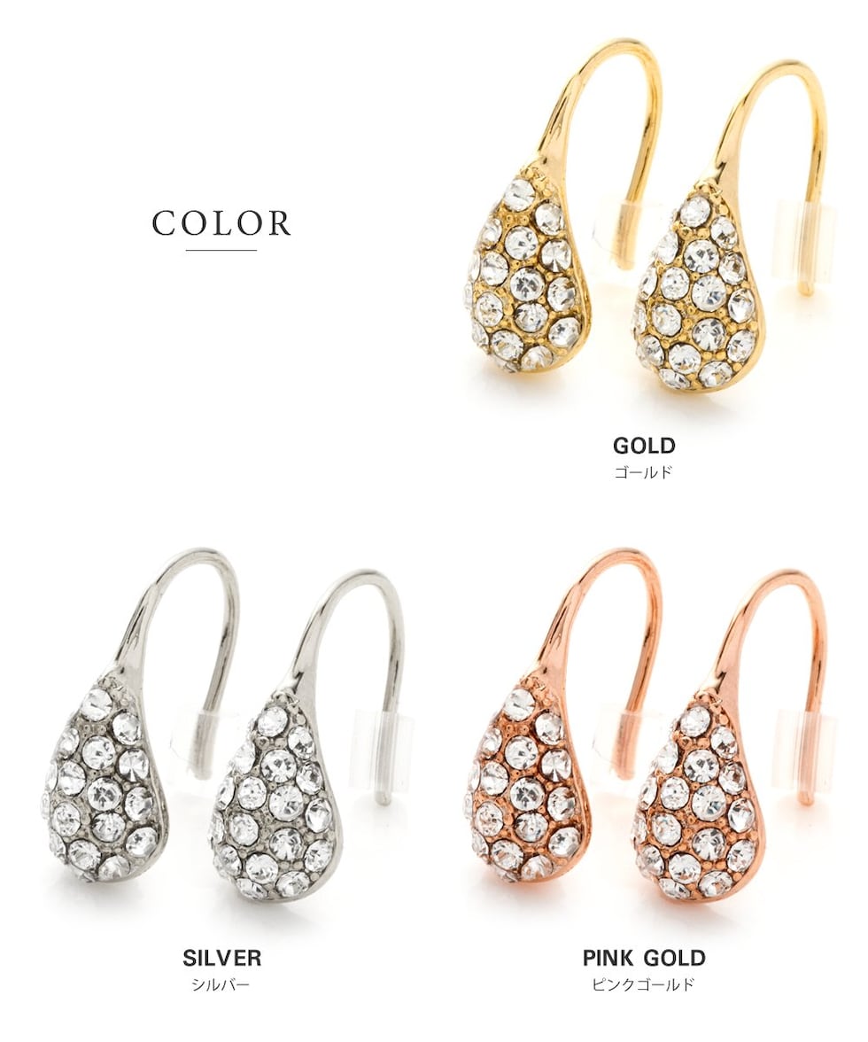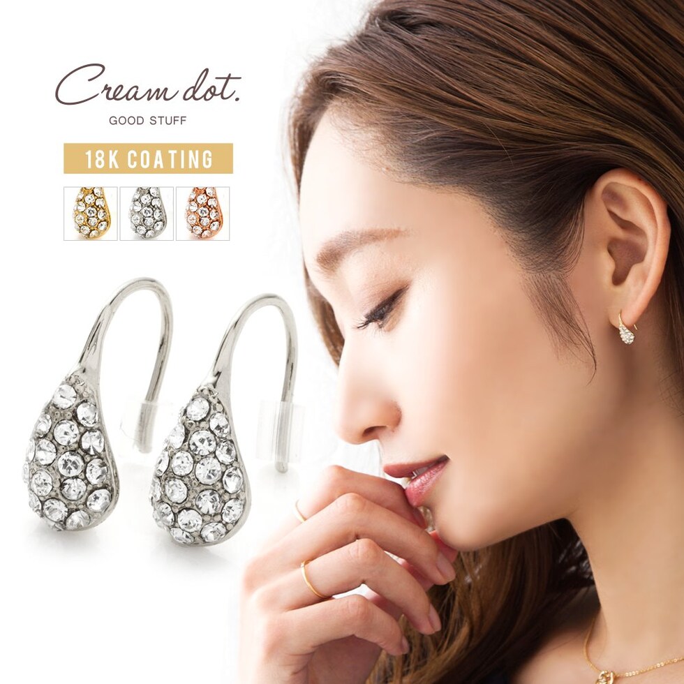 ピアス 金属アレルギー ニッケルフリー レディース フック ぶらさがり パヴェ ドロップ ビジュー しずく 雫 cream dot ゆうパケット [シルバー_ピアス]