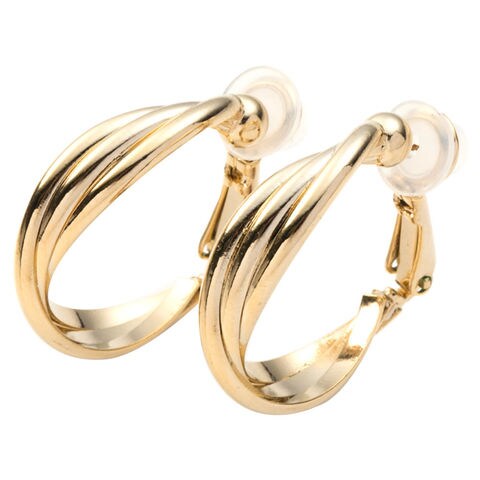 ピアス イヤリング 金属アレルギー ニッケルフリー レディース ロジウムコーティング クリップ式 キャッチレス 3連 リング 交わる cream dot ゆうパケット [ゴールド_イヤリング]