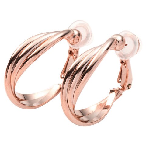 ピアス イヤリング 金属アレルギー ニッケルフリー レディース ロジウムコーティング クリップ式 キャッチレス 3連 リング 交わる cream dot ゆうパケット [ピンクゴールド_イヤリング]