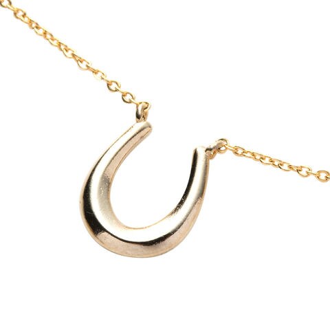 立体的で小ぶりなホースシュー(馬蹄)モチーフがデコルテで艶めくネックレス。柔らかく上品な印象で胸元から女性らしさを演出してくれます。オフィス使いはもちろん、デイリー使いにもぴったりです。