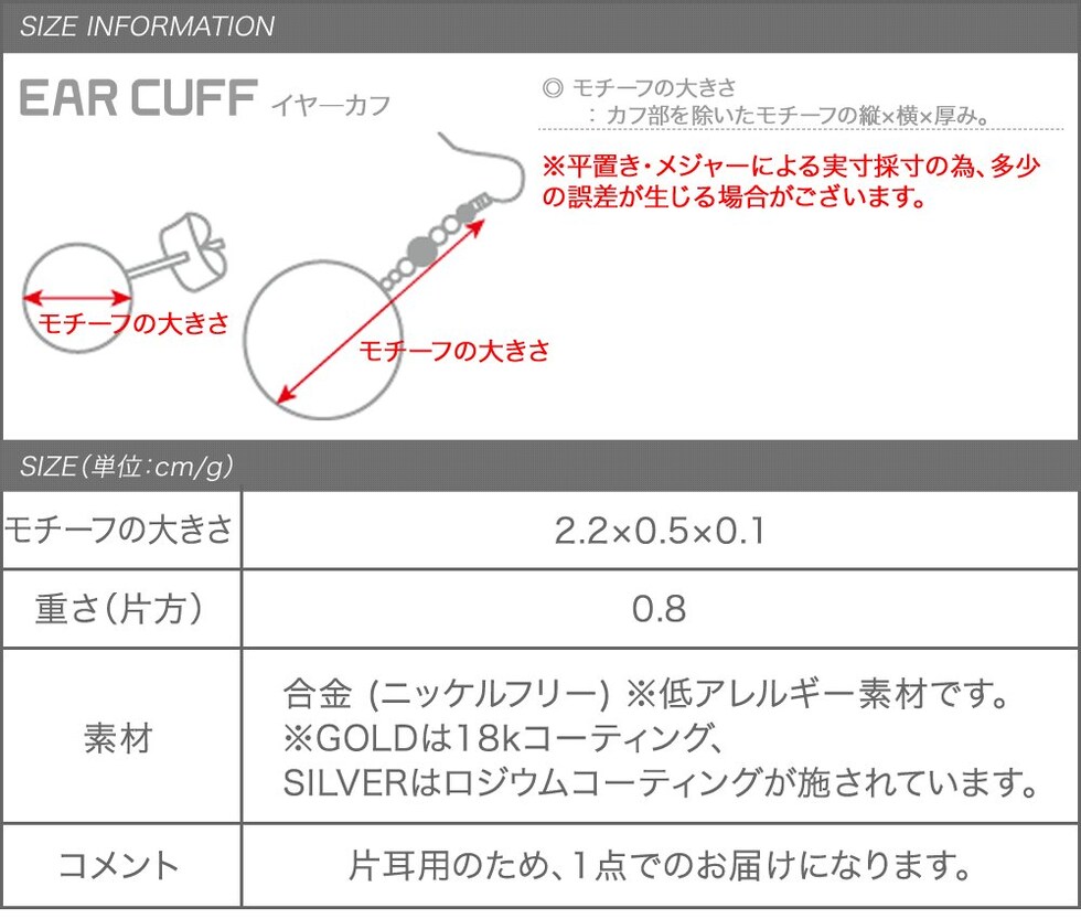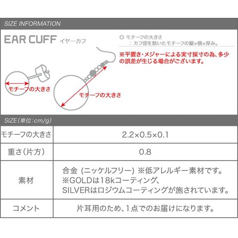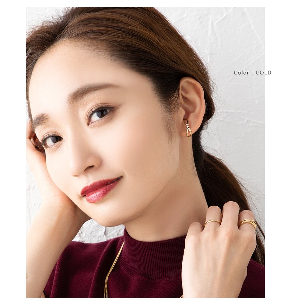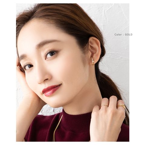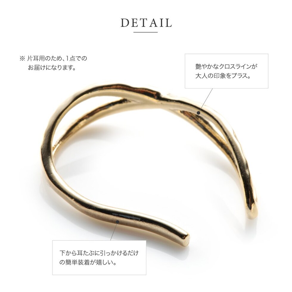 下から耳たぶに引っかけるだけの簡単装着で、デイリーコーデのアクセントにオススメ。