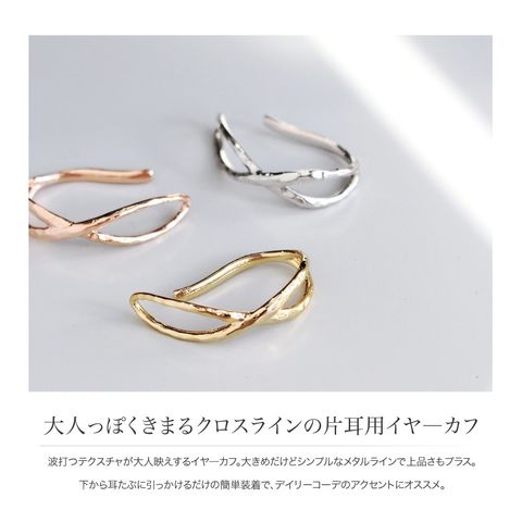 波打つテクスチャが大人映えするイヤ―カフ。