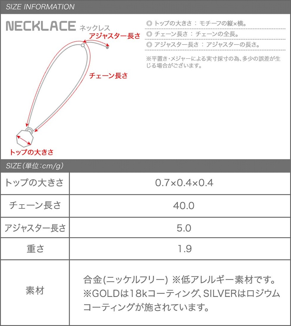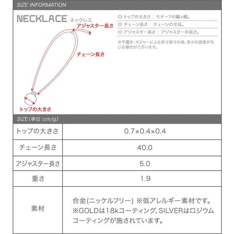 控えめなサイズのモチーフに合わせた華奢なベネチアンチェーンと小ぶりな留め具で、大人っぽく上品に身に着けられるアイテムです。