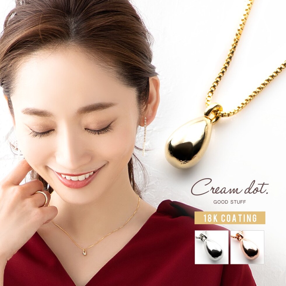 ネックレス 金属アレルギー ニッケルフリー レディース ショート チェーン ドロップ フック 涙 しずく 雫 cream dot ゆうパケット [ゴールド_ワンサイズ]