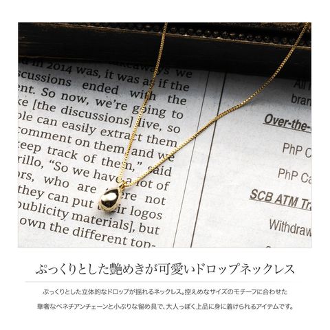 ぷっくりとした立体的なドロップが揺れるネックレス。