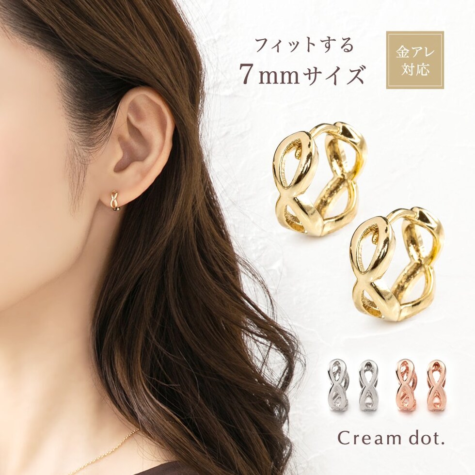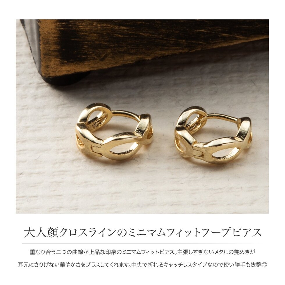 ピアス 金属アレルギー ニッケルフリー レディース フープ キャッチレス 小さめ ミニマム クロス フィット cream dot ゆうパケット [ピンクゴールド_ピアス]