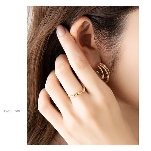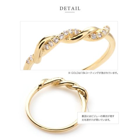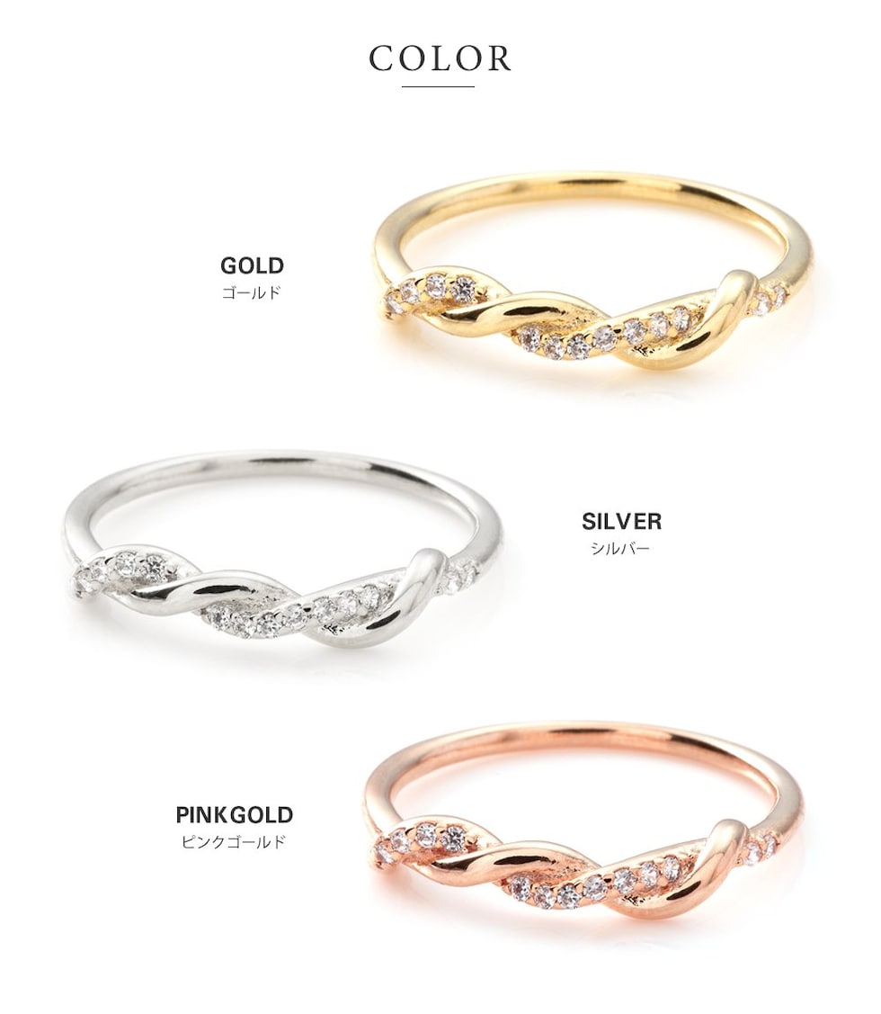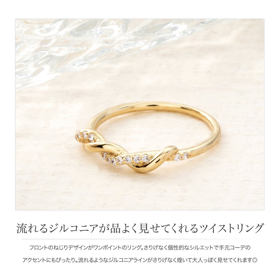 リング 指輪 金属アレルギー ニッケルフリー レディース キュービックジルコニア ツイスト ねじり cream dot ゆうパケット [ピンクゴールド_11号]