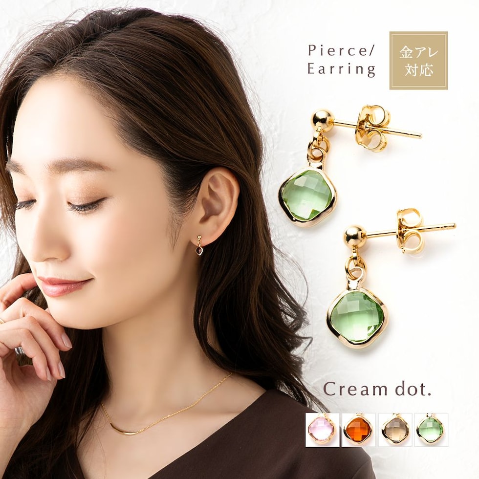 ピアス イヤリング 金属アレルギー ニッケルフリー レディース 揺れる 小ぶり グリーン cream dot ゆうパケット [ブラウン_イヤリング]
