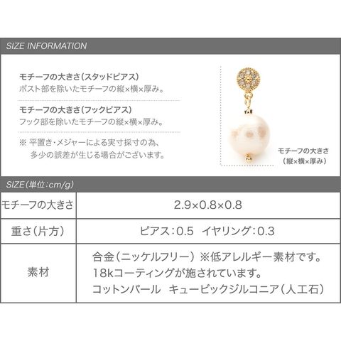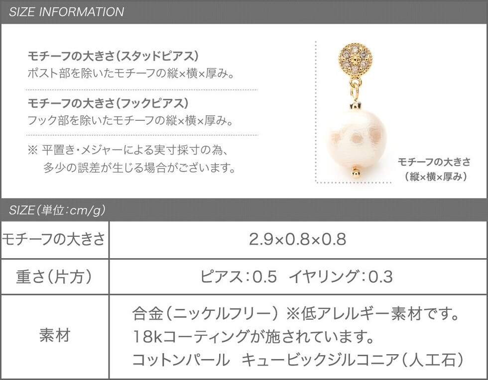 片方 ピアス:0.5g イヤリング:0.3g