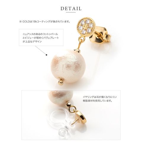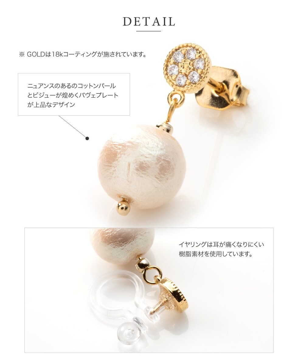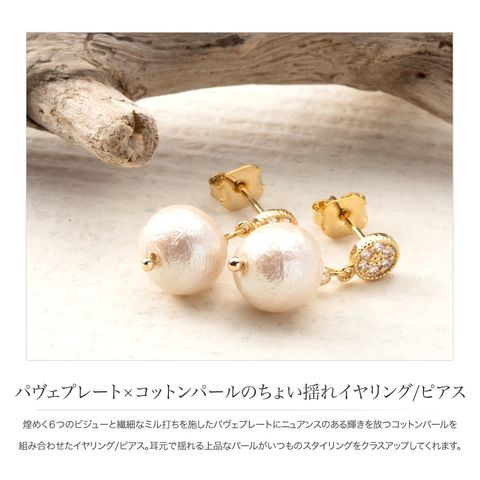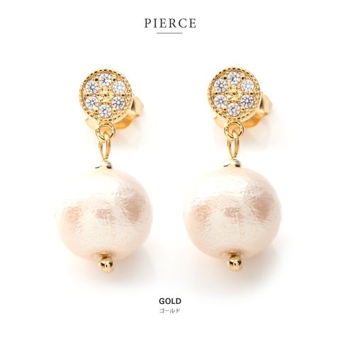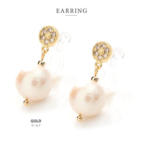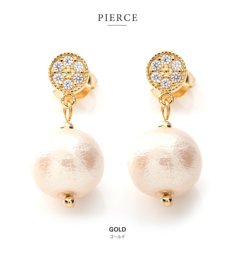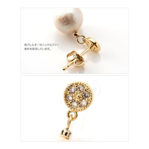 ピアス イヤリング 金属アレルギー ニッケルフリー レディース 揺れる パヴェ ビジュー コットンパール cream dot ゆうパケット [ゴールド_イヤリング]