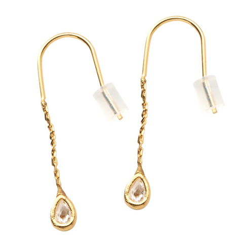 耳元で清楚に煌めく小粒ドロップビジューのちょい揺れピアス。