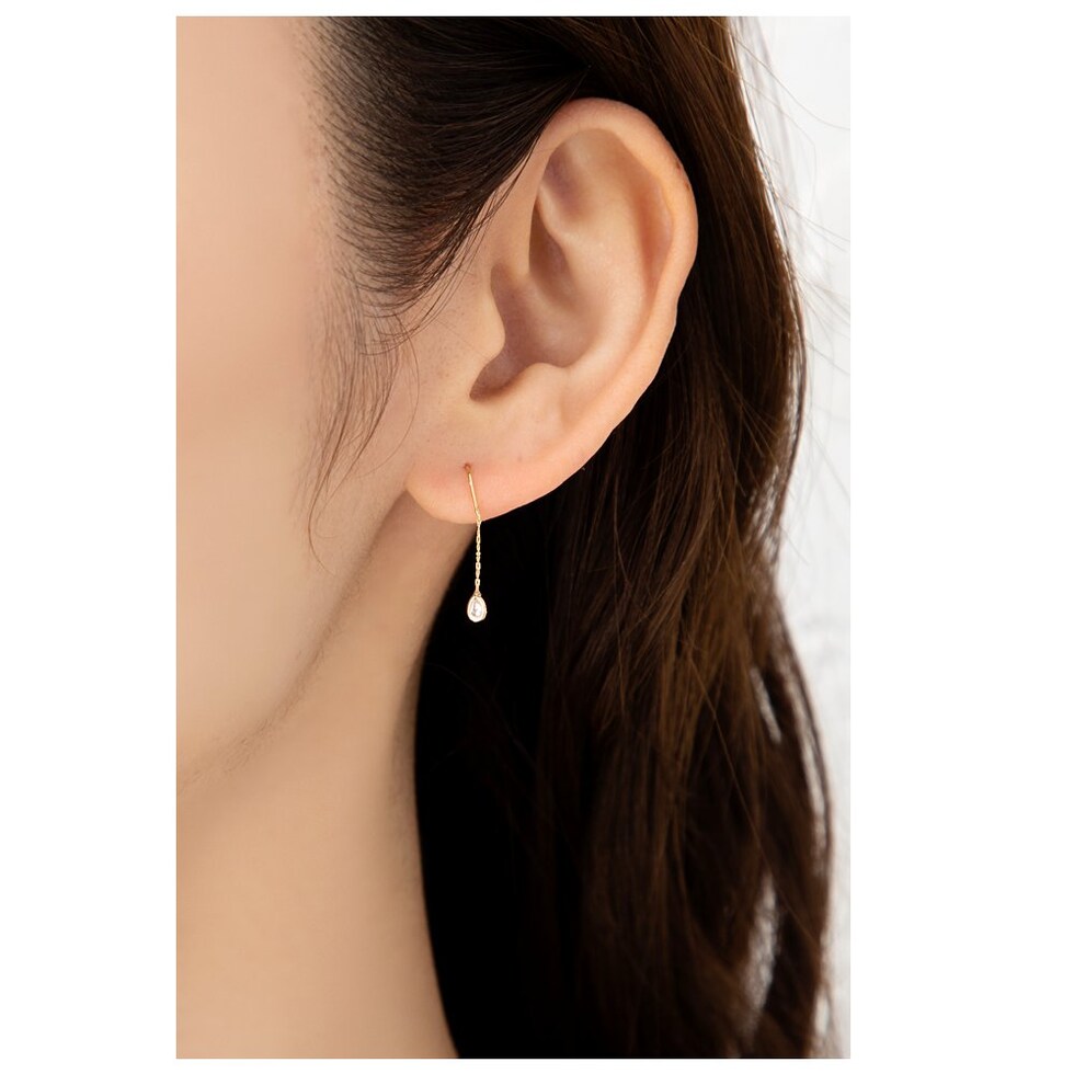 耳元で清楚に煌めく小粒ドロップビジューのちょい揺れピアス。