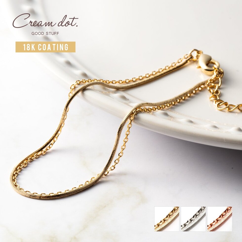 ブレスレット 金属アレルギー ニッケルフリー レディース 2連 スネークチェーン cream dot ゆうパケット [ピンクゴールド_ワンサイズ]