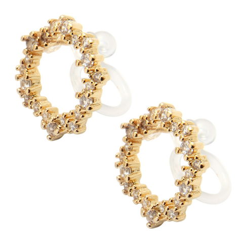 ピアス イヤリング 金属アレルギー ニッケルフリー レディース キュービックジルコニア サークル リング cream dot ゆうパケット [ゴールド_イヤリング]