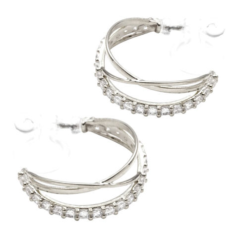 イヤリング ピアス 金属アレルギー ニッケルフリー レディース フープ キュービックジルコニア レイヤード風 cream dot ゆうパケット [シルバー_イヤリング]