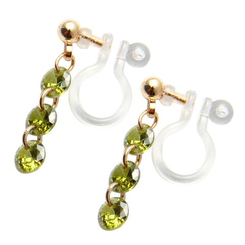ピアス 金属アレルギー ニッケルフリー レディース 揺れる キュービックジルコニア 3連 三連 cream dot ゆうパケット [グリーン_イヤリング]
