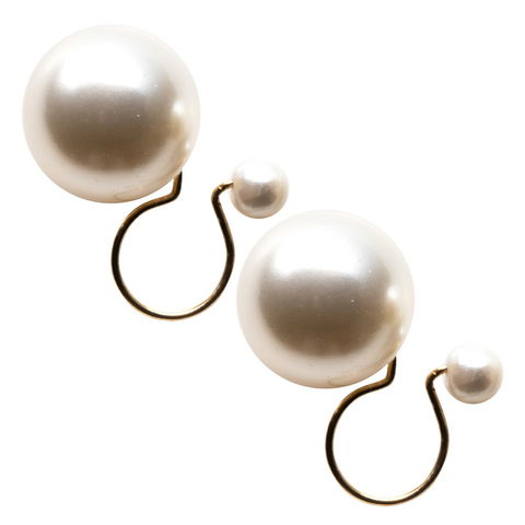 大小のパールを組み合わせた選べる3サイズのリバーシブルイヤリング。