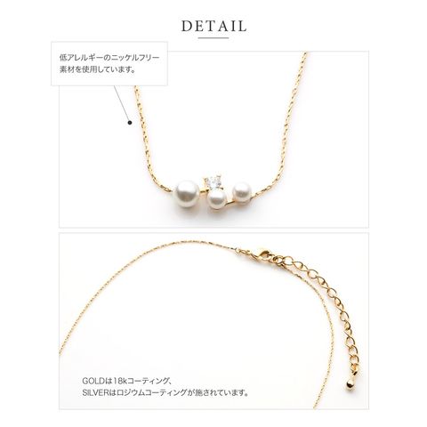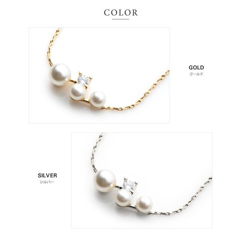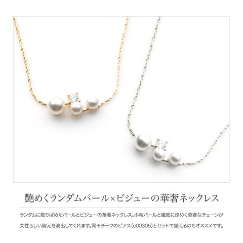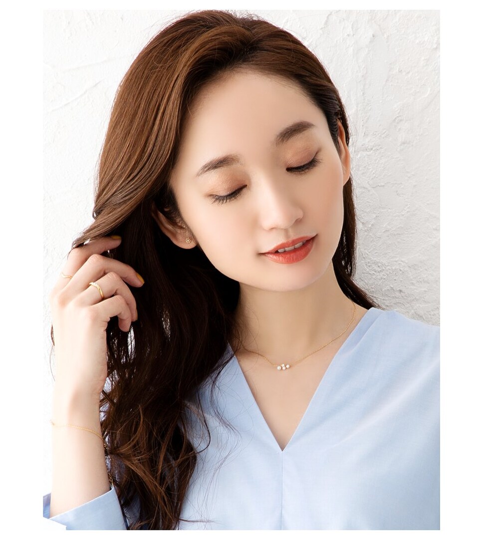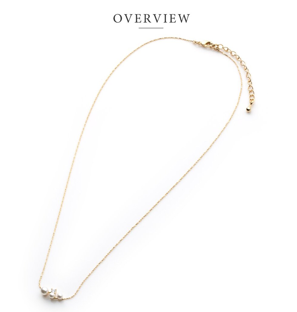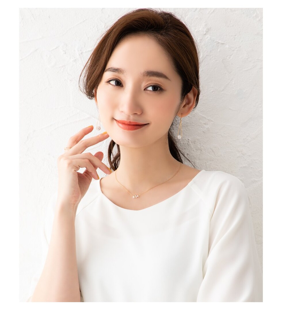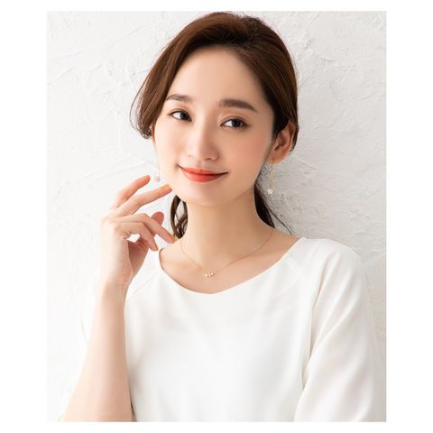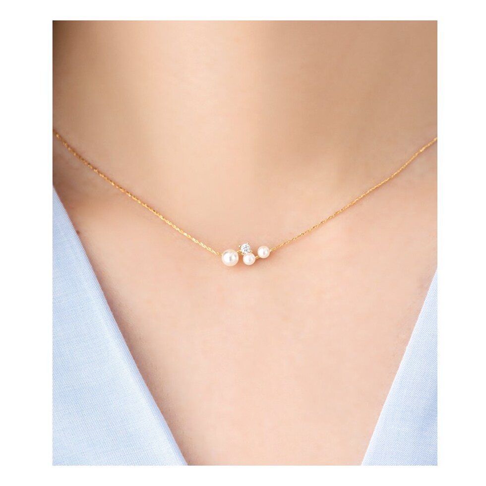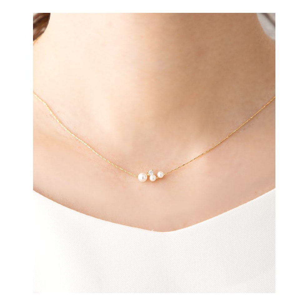小粒パールと繊細に煌めく華奢なチェーンが女性らしい胸元を演出してくれます。