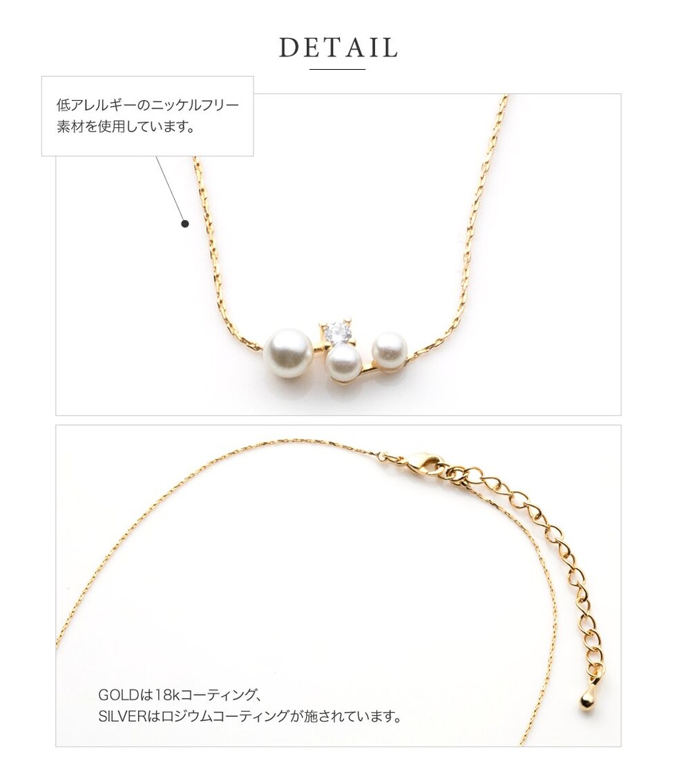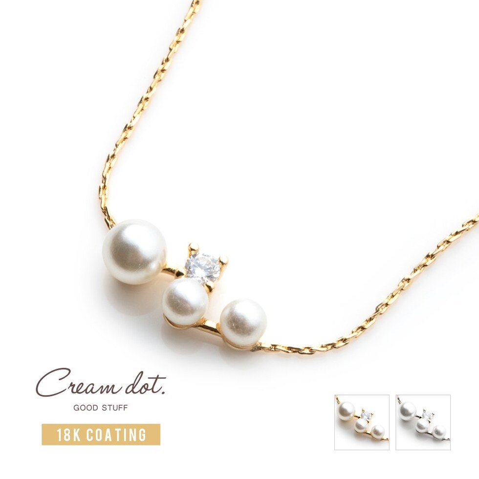 ネックレス 金属アレルギー ニッケルフリー レディース ショート チェーン キュービックジルコニア パール cream dot ゆうパケット [ゴールド_ワンサイズ]