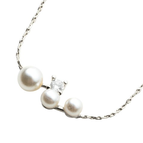 小粒パールと繊細に煌めく華奢なチェーンが女性らしい胸元を演出してくれます。