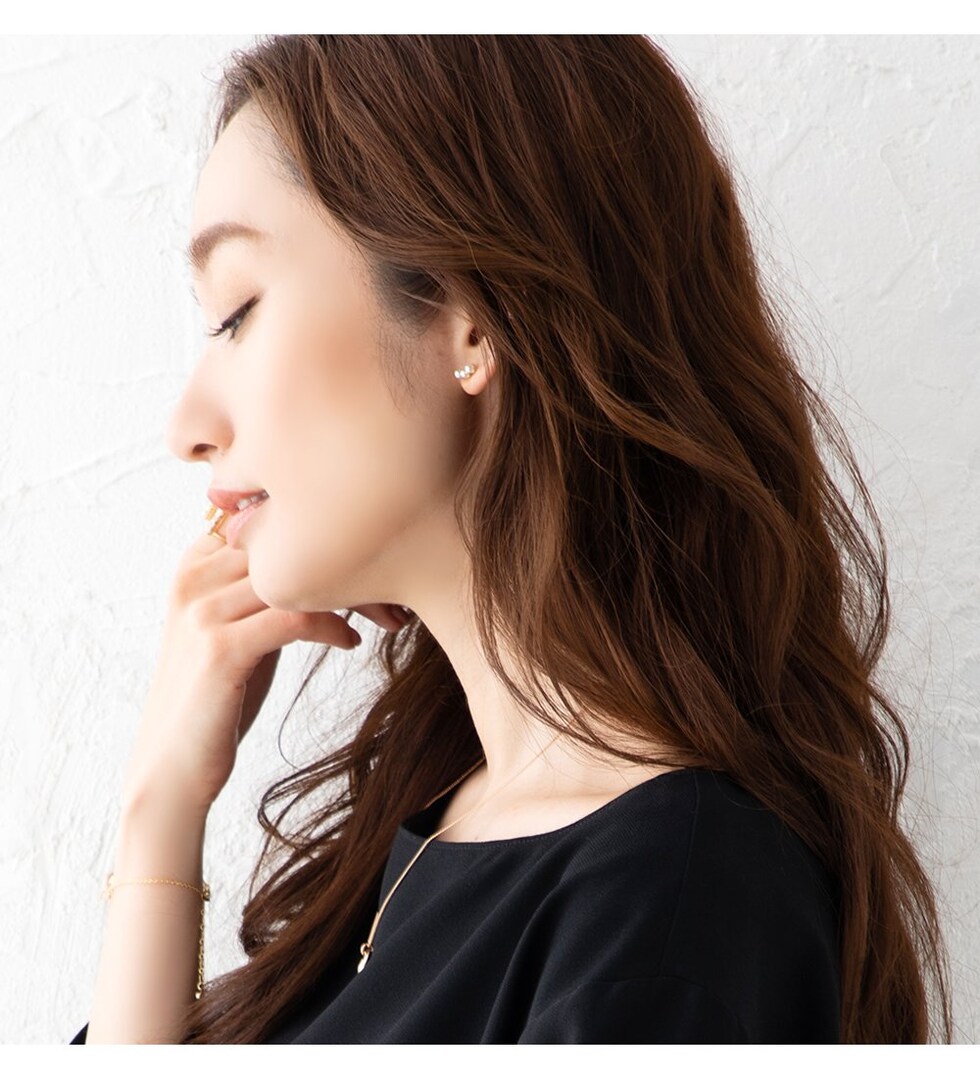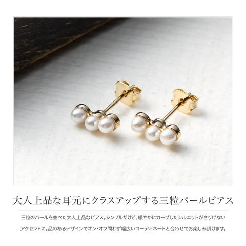 三粒のパールを並べた大人上品なピアス。