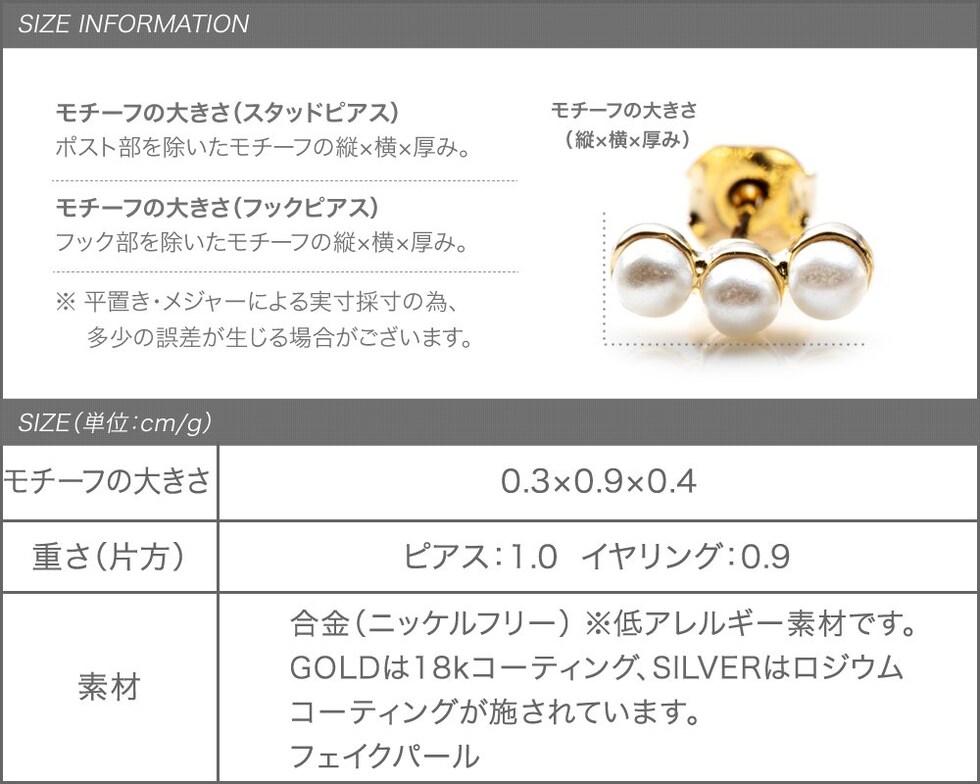 片方 ピアス:1.0g イヤリング:0.9g
