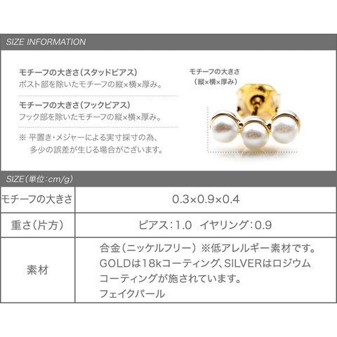 ピアス イヤリング 金属アレルギー ニッケルフリー レディース 小ぶり パール 3連 cream dot ゆうパケット [シルバー_ピアス]