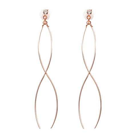 緩やかにカーブしたS字メタルラインを交差させたイヤリング/ピアス。
