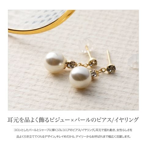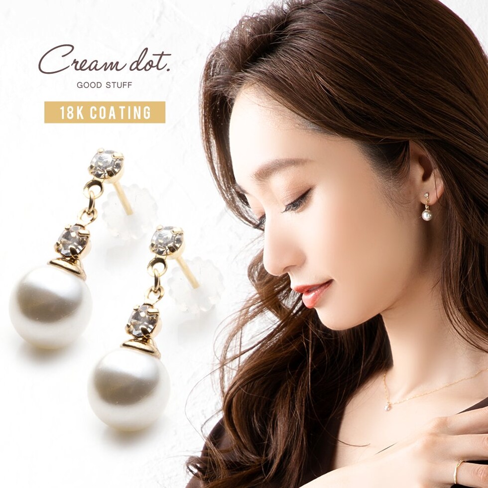 ピアス イヤリング 金属アレルギー ニッケルフリー レディース 揺れる ビジュー パール cream dot ゆうパケット [シルバー_ピアス]