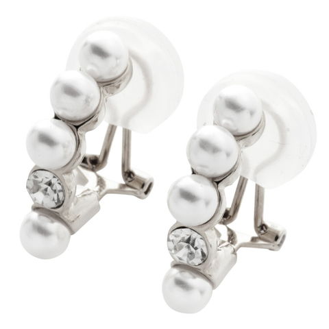 イヤリング ピアス 金属アレルギー ニッケルフリー レディース シリコンカバー クリップ式 パール キュービックジルコニア カーブ cream dot ゆうパケット [B:シルバー_イヤリング]