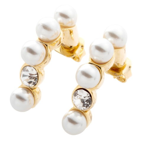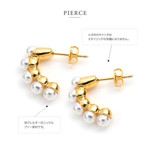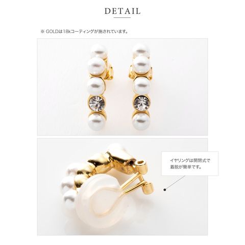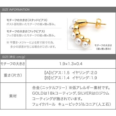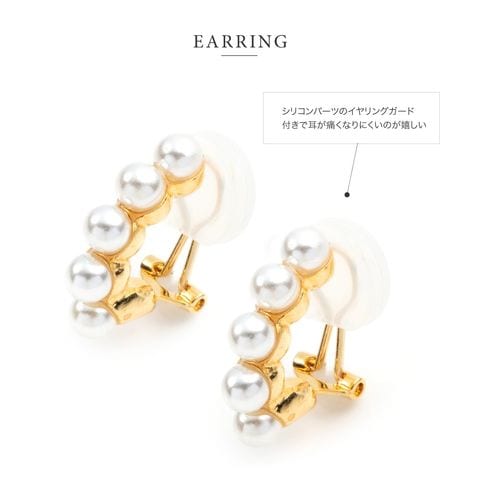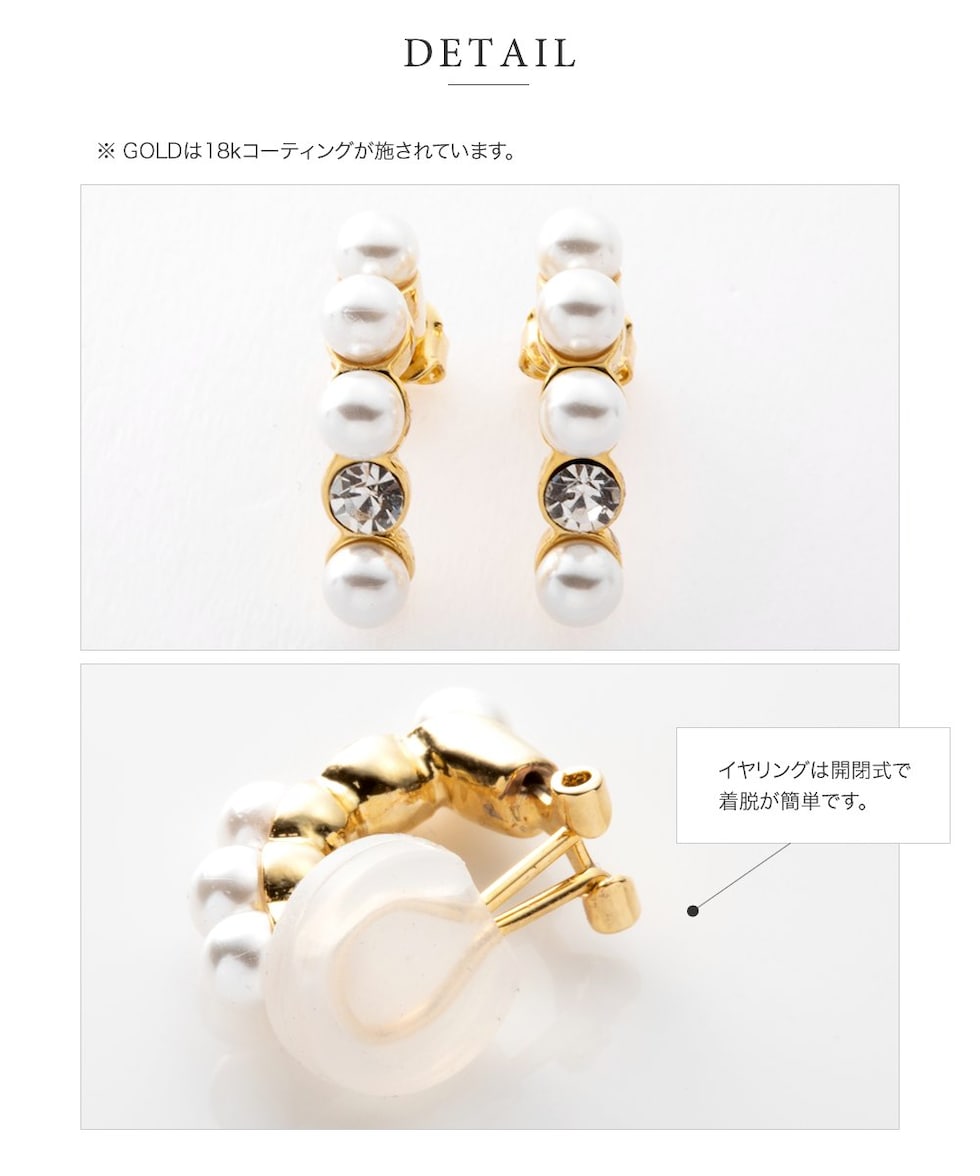 イヤリング ピアス 金属アレルギー ニッケルフリー レディース シリコンカバー クリップ式 パール キュービックジルコニア カーブ cream dot ゆうパケット [B:ゴールド_ピアス]