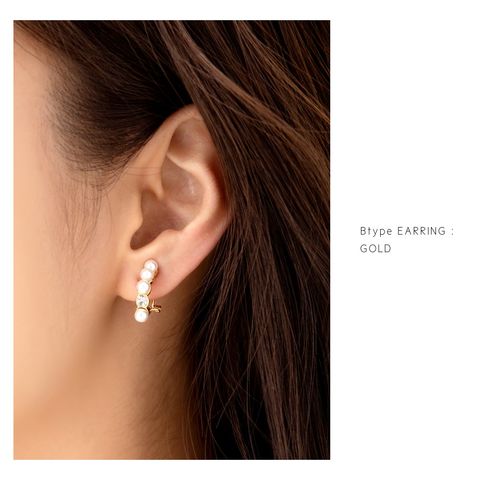 ビジューを加えたBタイプもご用意しました。柔らかな光を放つ程よいサイズ感のパールとシンプルなデザインが耳元を上品に演出。