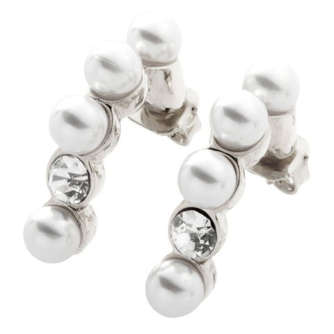 イヤリング ピアス 金属アレルギー ニッケルフリー レディース シリコンカバー クリップ式 パール キュービックジルコニア カーブ cream dot ゆうパケット [B:シルバー_ピアス]
