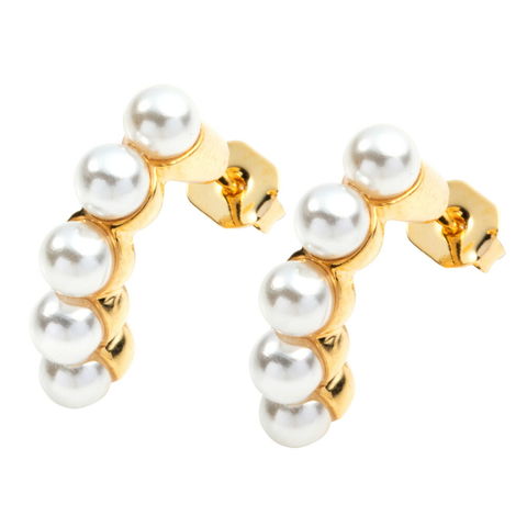 イヤリング ピアス 金属アレルギー ニッケルフリー レディース シリコンカバー クリップ式 パール キュービックジルコニア カーブ cream dot ゆうパケット [A:ゴールド_ピアス]