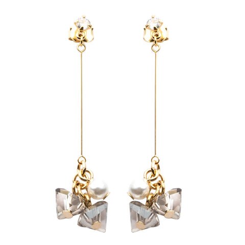 イヤリング ピアス 金属アレルギー ニッケルフリー レディース 揺れる キュービックジルコニア パール ストーン cream dot ゆうパケット [グレー_ピアス]