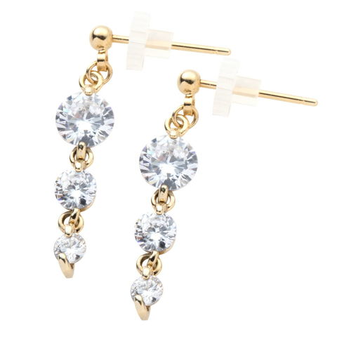 ピアス イヤリング 金属アレルギー ニッケルフリー レディース 揺れる ビジュー 3連 三連 cream dot ゆうパケット [ゴールド_ピアス]