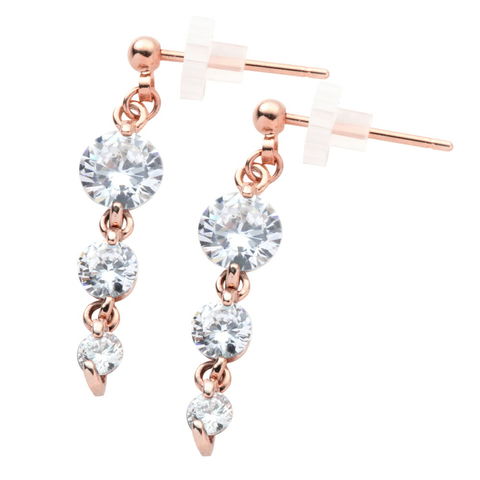 ピアス イヤリング 金属アレルギー ニッケルフリー レディース 揺れる ビジュー 3連 三連 cream dot ゆうパケット [ピンクゴールド_ピアス]