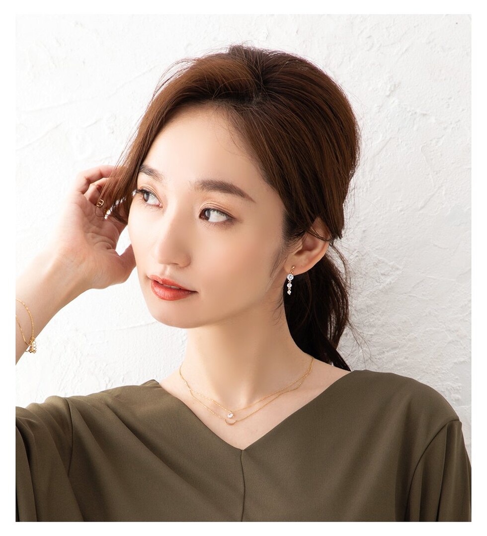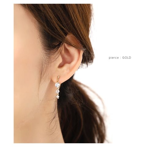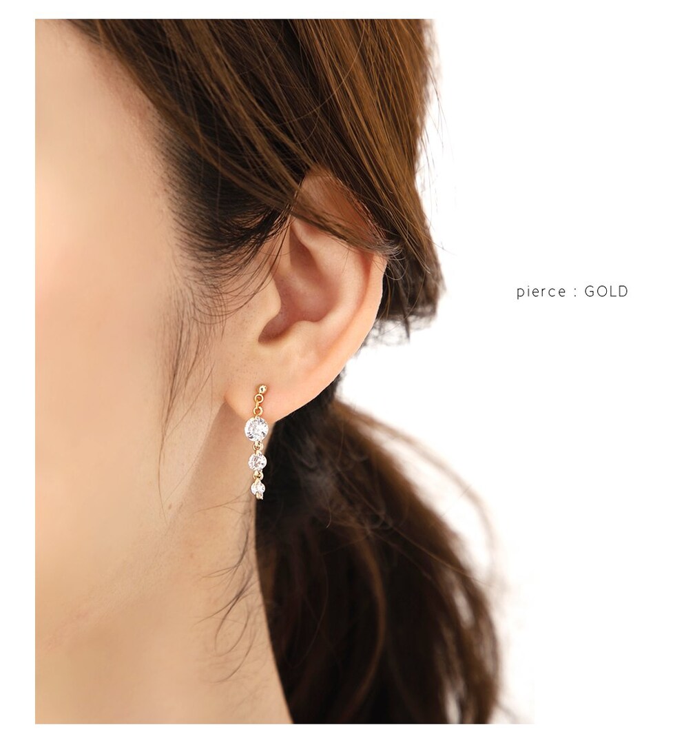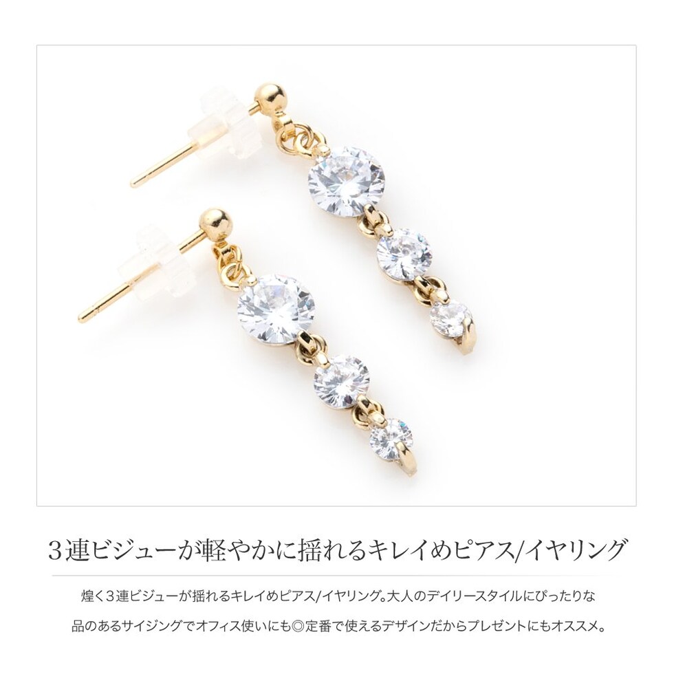 煌く3連ビジューが揺れるキレイめピアス/イヤリング。