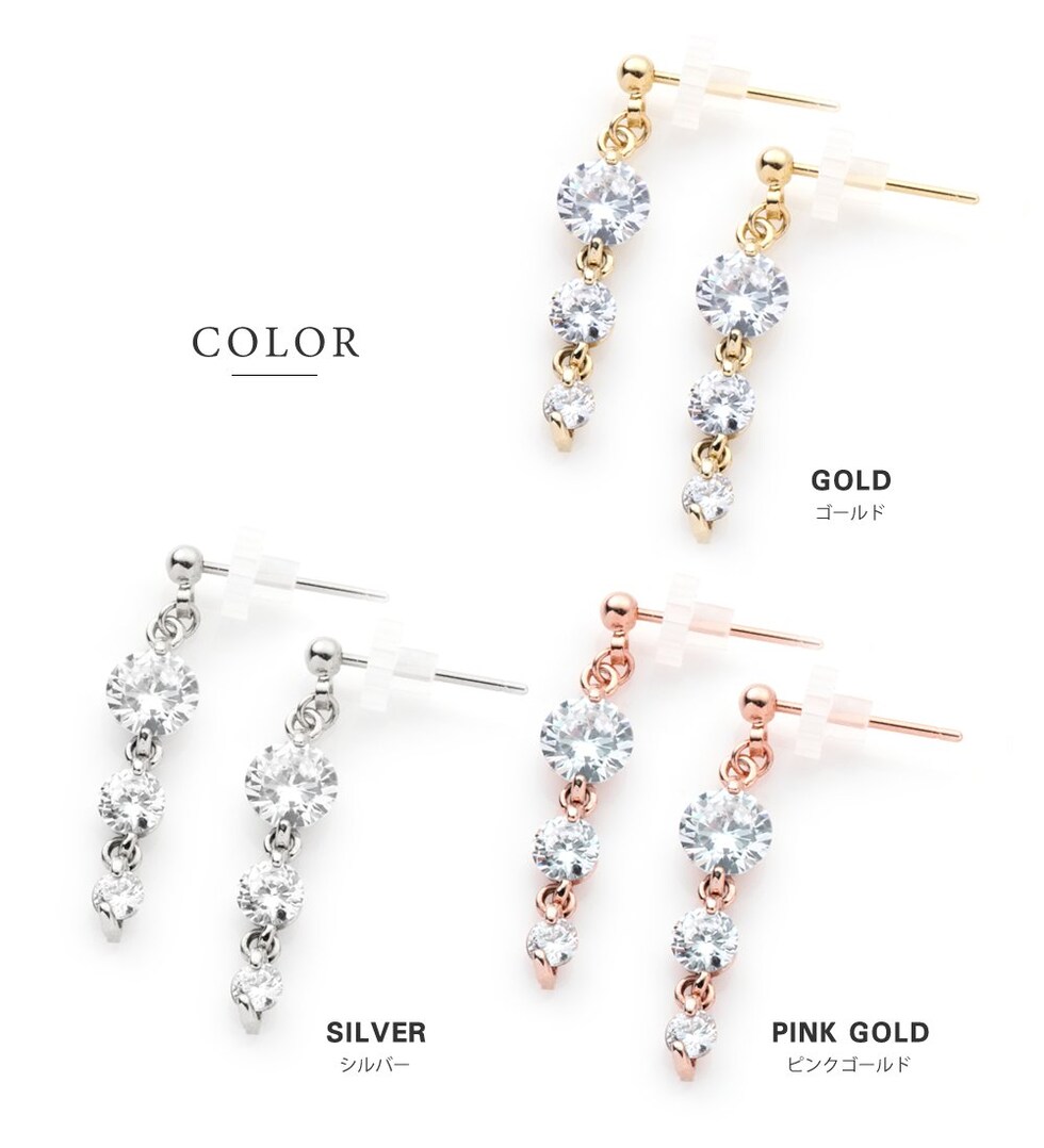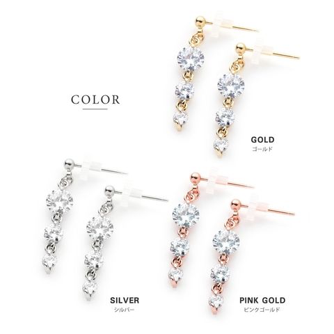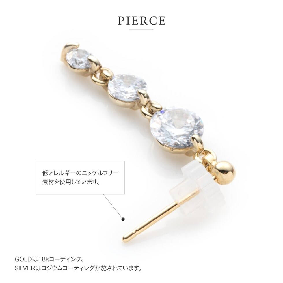 ピアス イヤリング 金属アレルギー ニッケルフリー レディース 揺れる ビジュー 3連 三連 cream dot ゆうパケット [シルバー_ピアス]