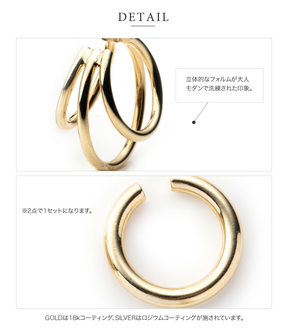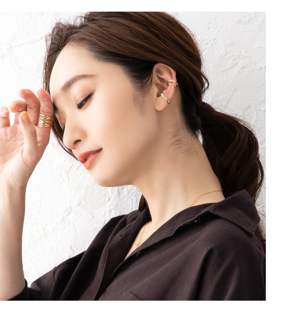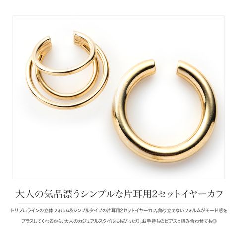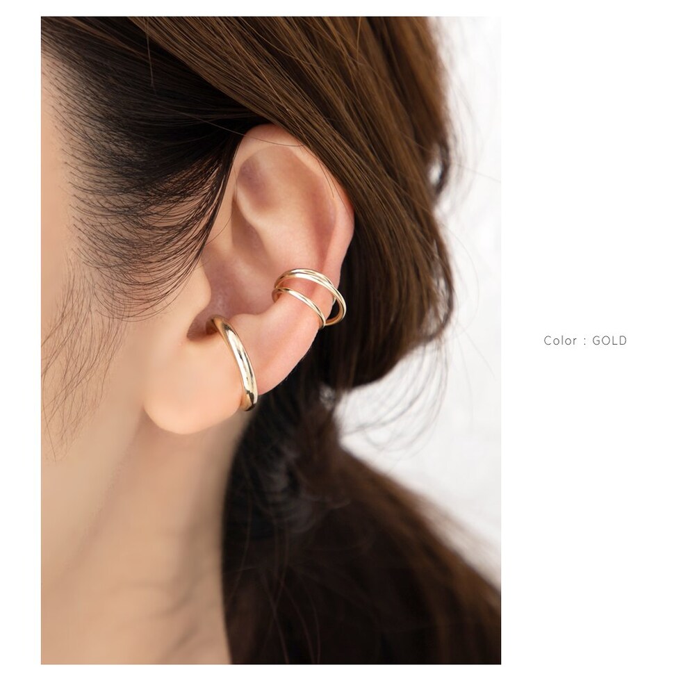 トリプルラインの立体フォルム&シンプルタイプの片耳用2セットイヤーカフ。