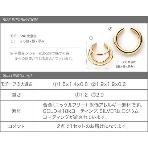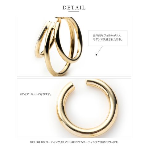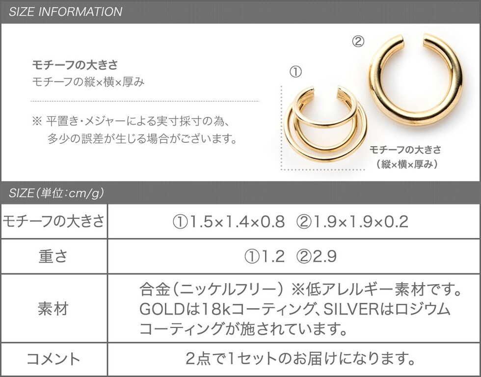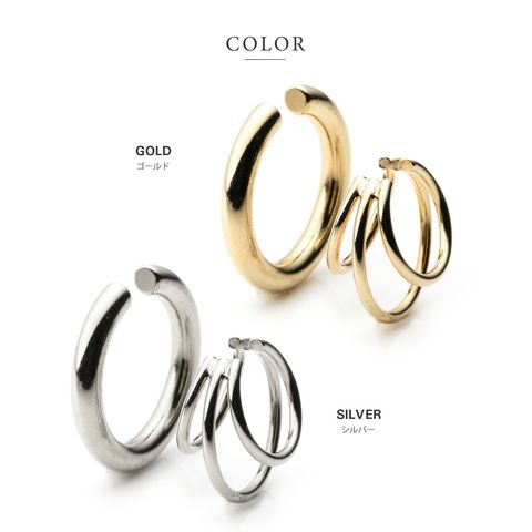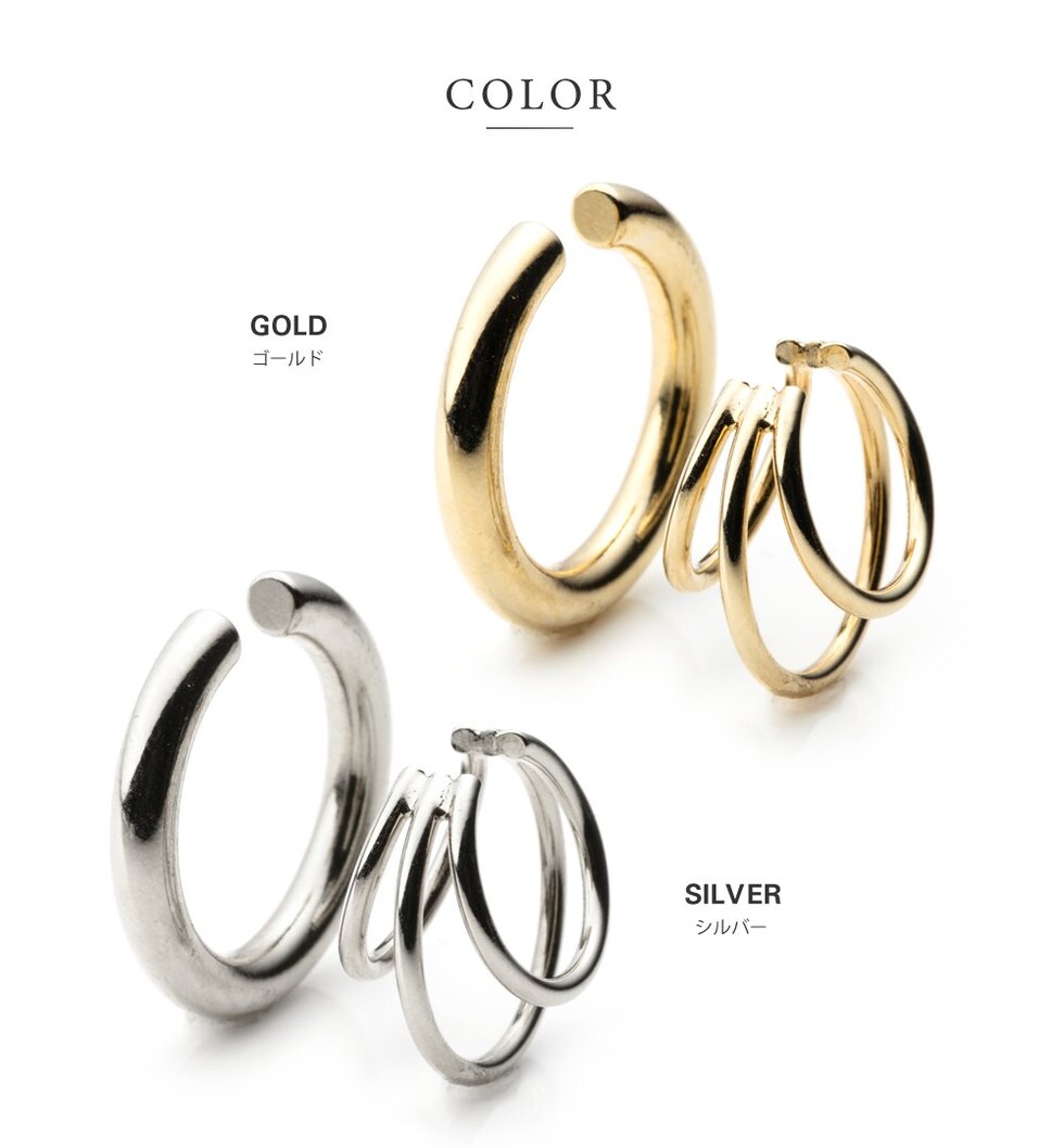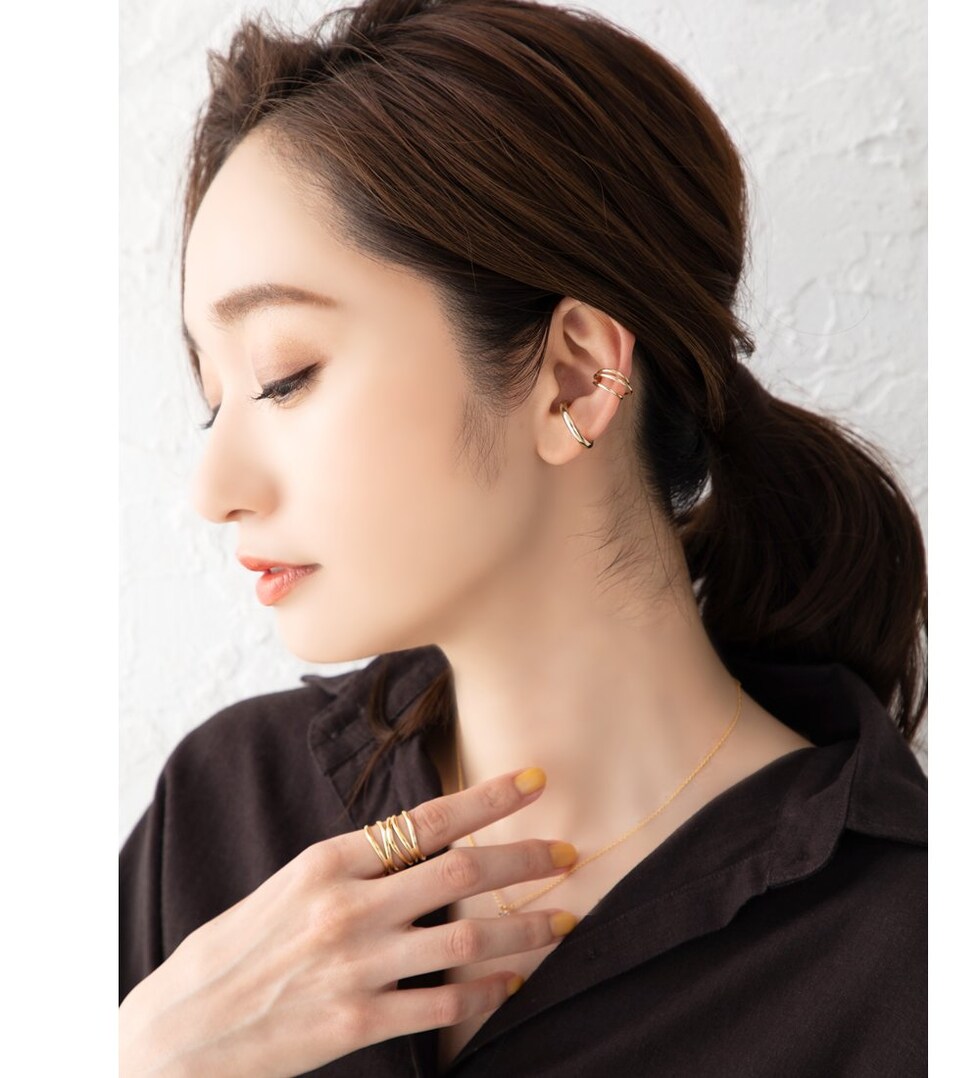 トリプルラインの立体フォルム&シンプルタイプの片耳用2セットイヤーカフ。
