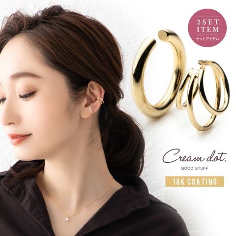 イヤーカフ 金属アレルギー ニッケルフリー レディース 二点セット イヤーカフ イヤカフ トリプルライン 片耳用 メタル cream dot ゆうパケット [ゴールド_ワンサイズ]