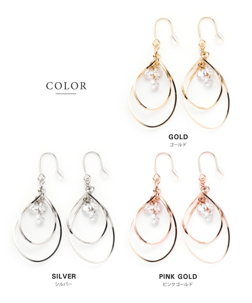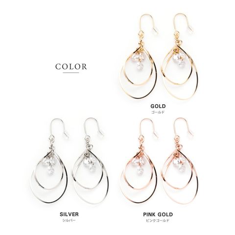 ピアス イヤリング 金属アレルギー ニッケルフリー レディース 揺れる フック ドロップ キュービックジルコニア cream dot ゆうパケット [ピンクゴールド_イヤリング]