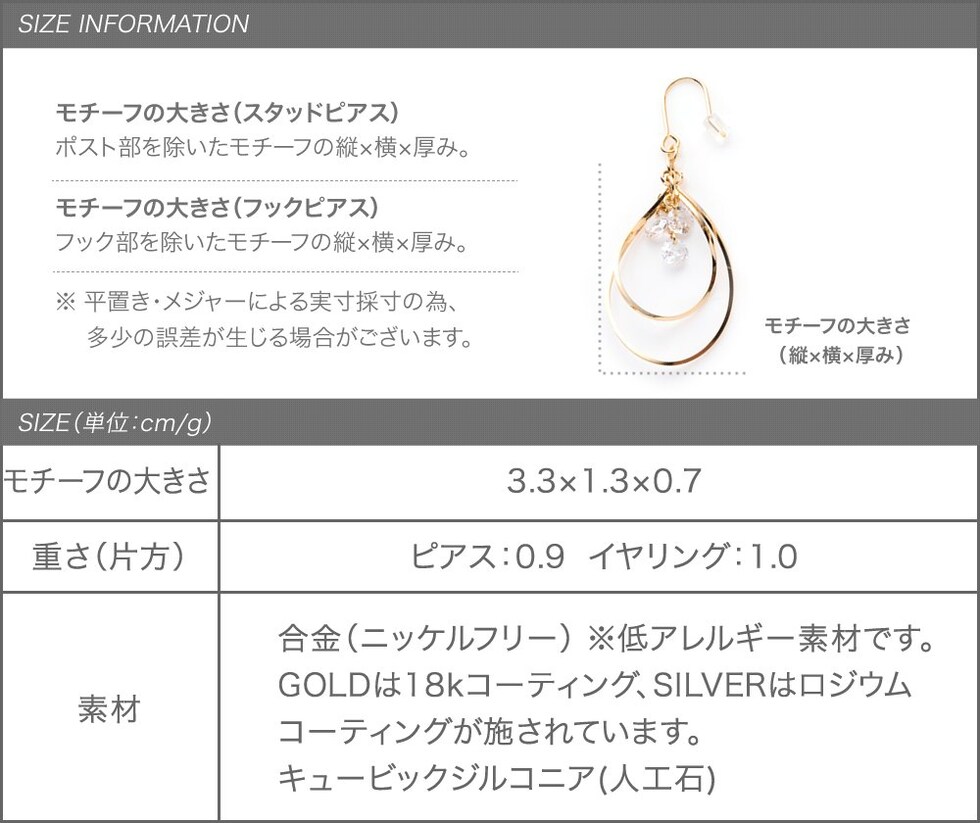 片方 ピアス:0.9g イヤリング:1.0g