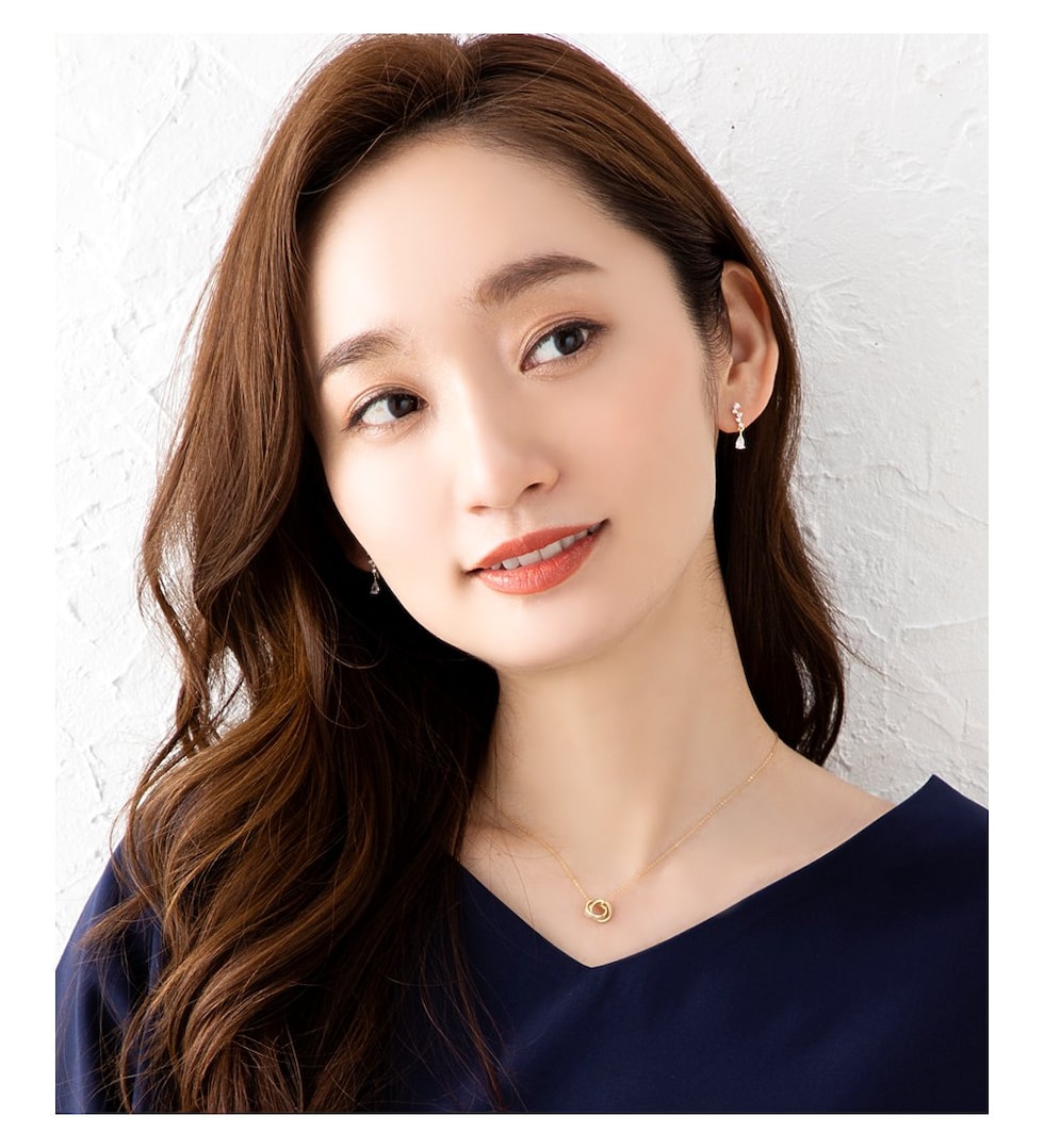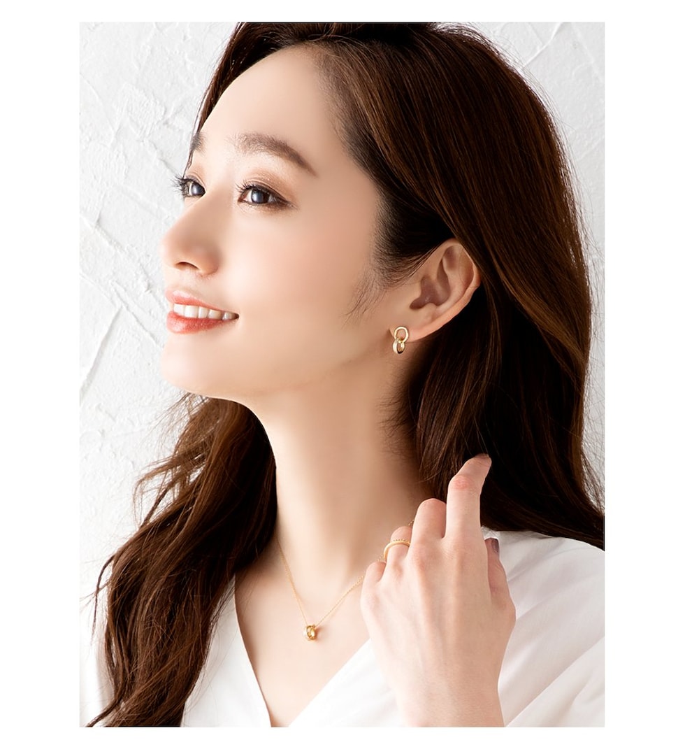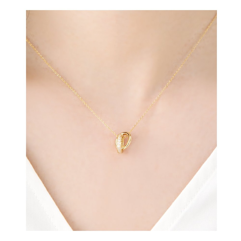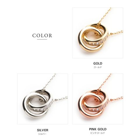 メタルとビジューラインの2連リングが動くたびに揺らめいて、輝きを放つネックレス。