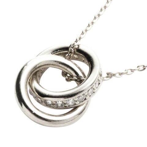 メタルとビジューラインの2連リングが動くたびに揺らめいて、輝きを放つネックレス。