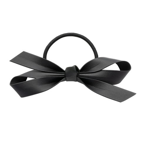 ヘアアクセサリー レディース ヘアゴム リボン レザー調 合皮 PUレザー 黒 cream dot ゆうパケット [ブラック_ワンサイズ]