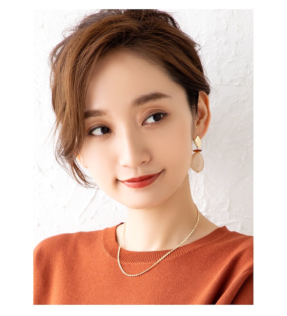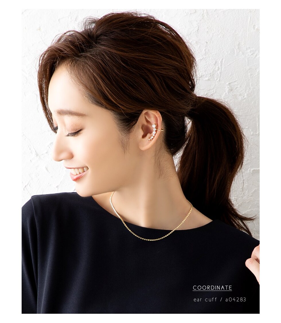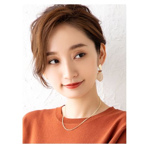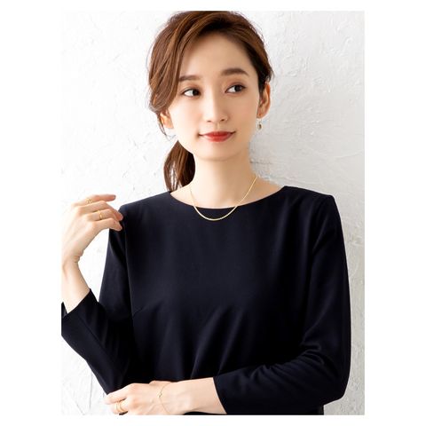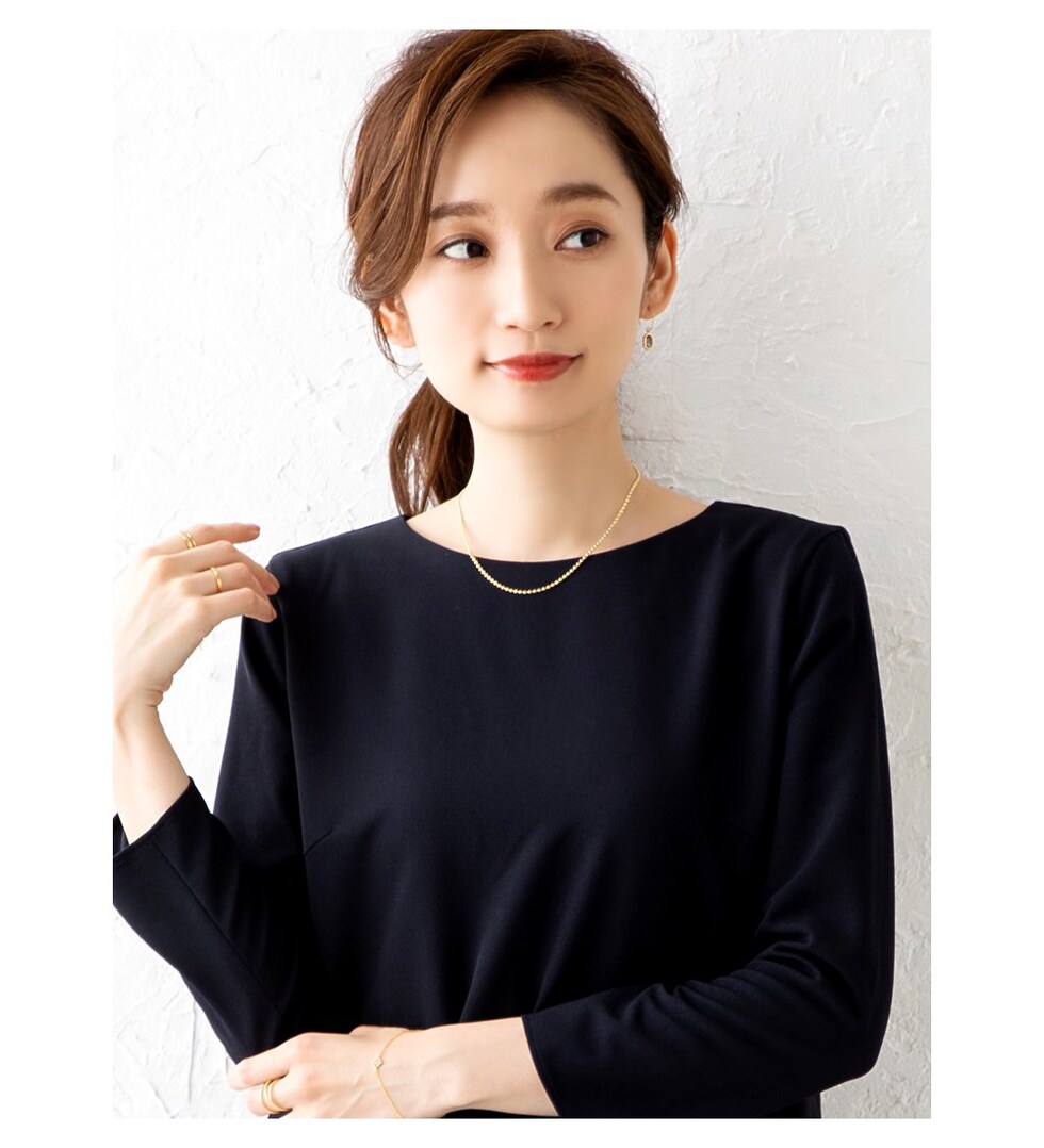 デコルテに沿ってしなやかに煌めくチェーンが女性らしい印象へ導きます。